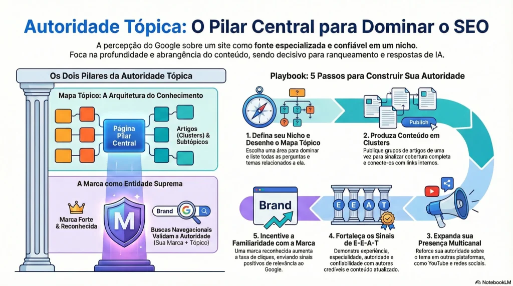 A autoridade tópica, ou topical authority, consolidou-se como o conceito mais crítico do SEO atual. Ela representa a percepção algorítmica…