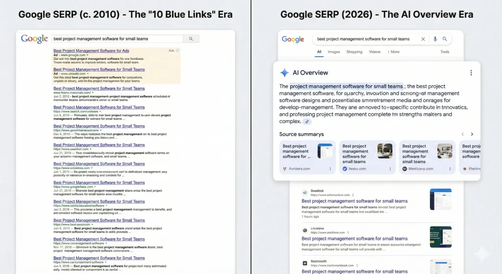 Hoje, com a consolidação da Inteligência Artificial Generativa nos resultados de pesquisa (como os AI Overviews), o conceito de visibilidade orgânica transformou-se.